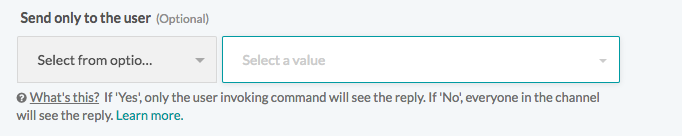 Configuring an ephemeral message with Workbot is simple. At the bottom of the Post Command Reply action, select ‘Yes’ to make the message an ephemeral one.
