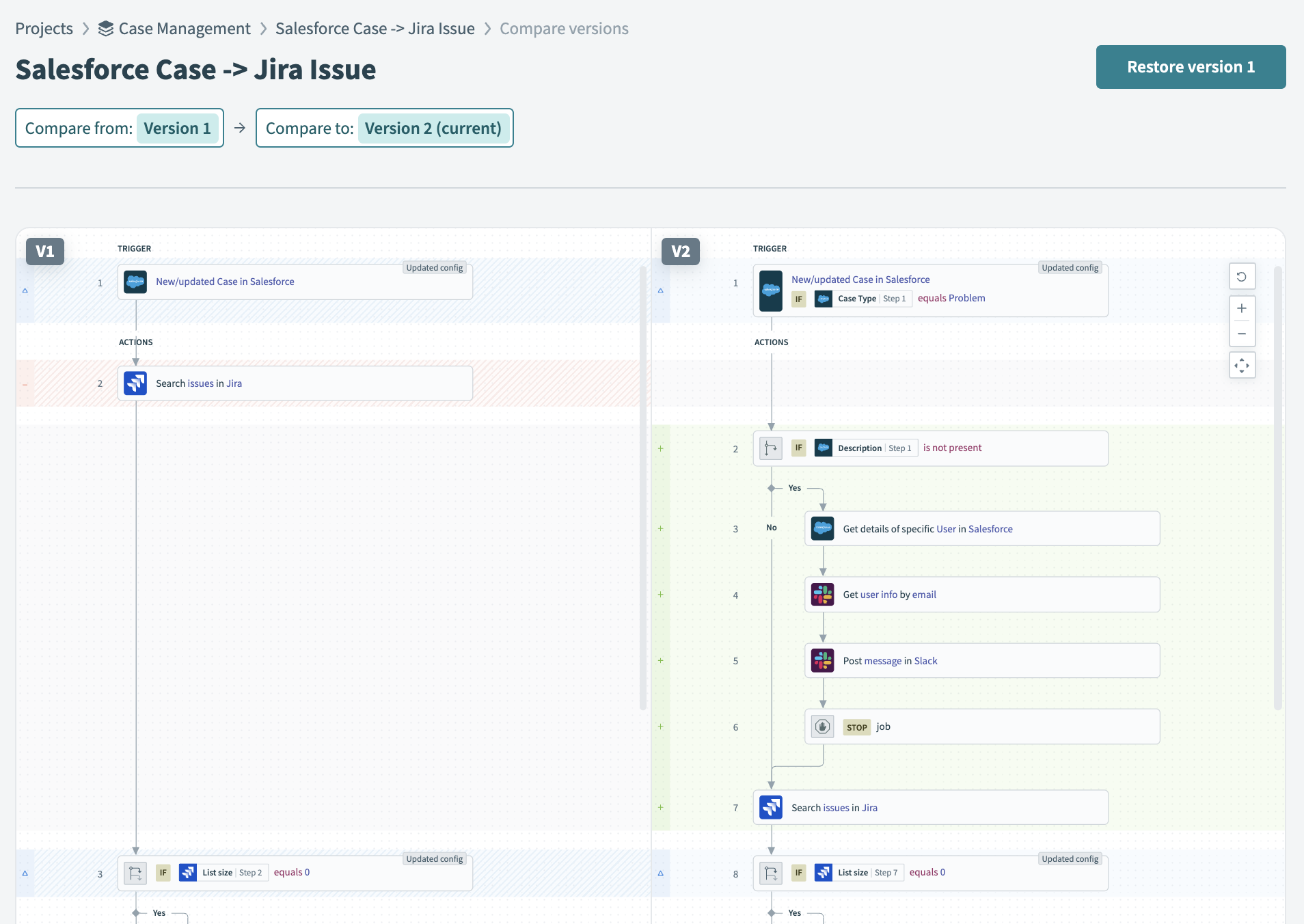 Whenever teams collaborate on a project over time, it’s essential to be able to manage versions, and to have visibility into what changes have been made between versions. For example:
