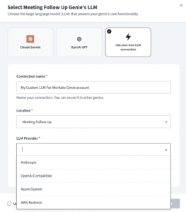 We’re also introducing BYOLLM, or Bring Your Own LLM, for Agent Studio. Enterprise customers can now use their existing, pre-approved AI models instead of Workato-managed infrastructure. If your organization has already completed security and legal approvals for providers like OpenAI, Anthropic, or AWS Bedrock, you can configure those credentials directly in your workspace.