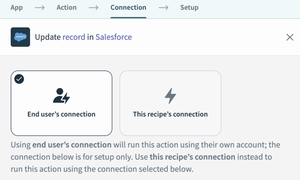 Verified User Access is now supported for Low Code App recipes, ensuring that actions taken inside Low Code Apps execute using the identity and permissions of the end user.