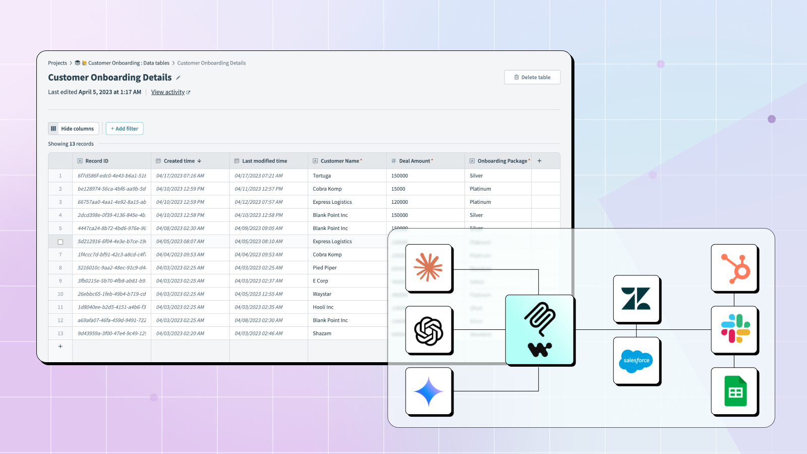 - Data synchronization: Keep data tables in sync with external databases or data warehouses.