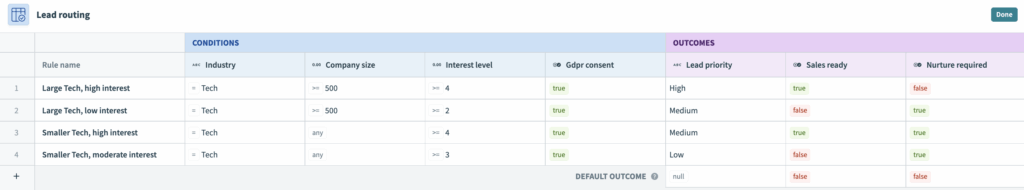 Built with Decision Tables, Decision Models make it easy to define, visualize, and maintain logic-based rules outside of your recipes. This separation allows for quick updates without code changes, reducing technical debt and increasing agility.