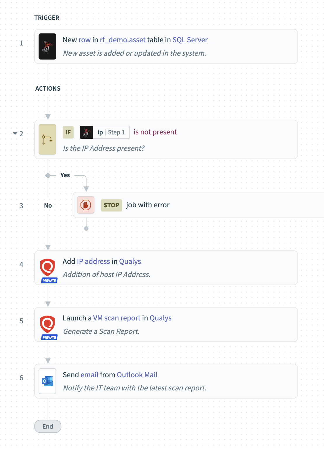 - Trigger: The automation kicks off whenever a new asset is added to the SQL Server database.