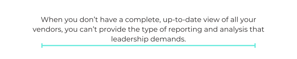 When you don’t have a complete, up-to-date view of all your vendors, you can’t provide the type of reporting and analysis that leadership demands.