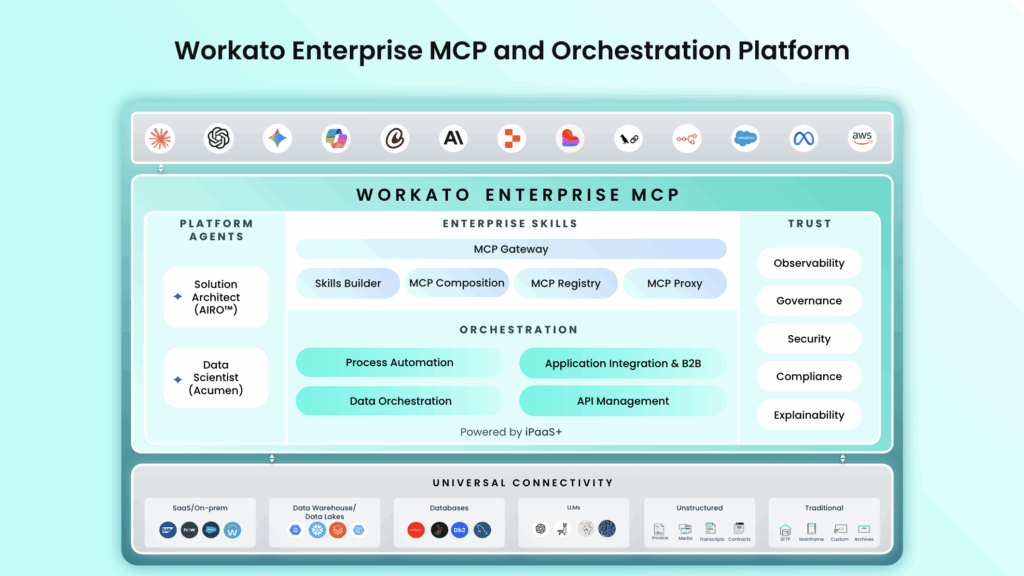 Workato’s Enterprise MCP Platform transforms AI from experimental to operational by giving it the predictability, context, and trust needed to run the business safely.
