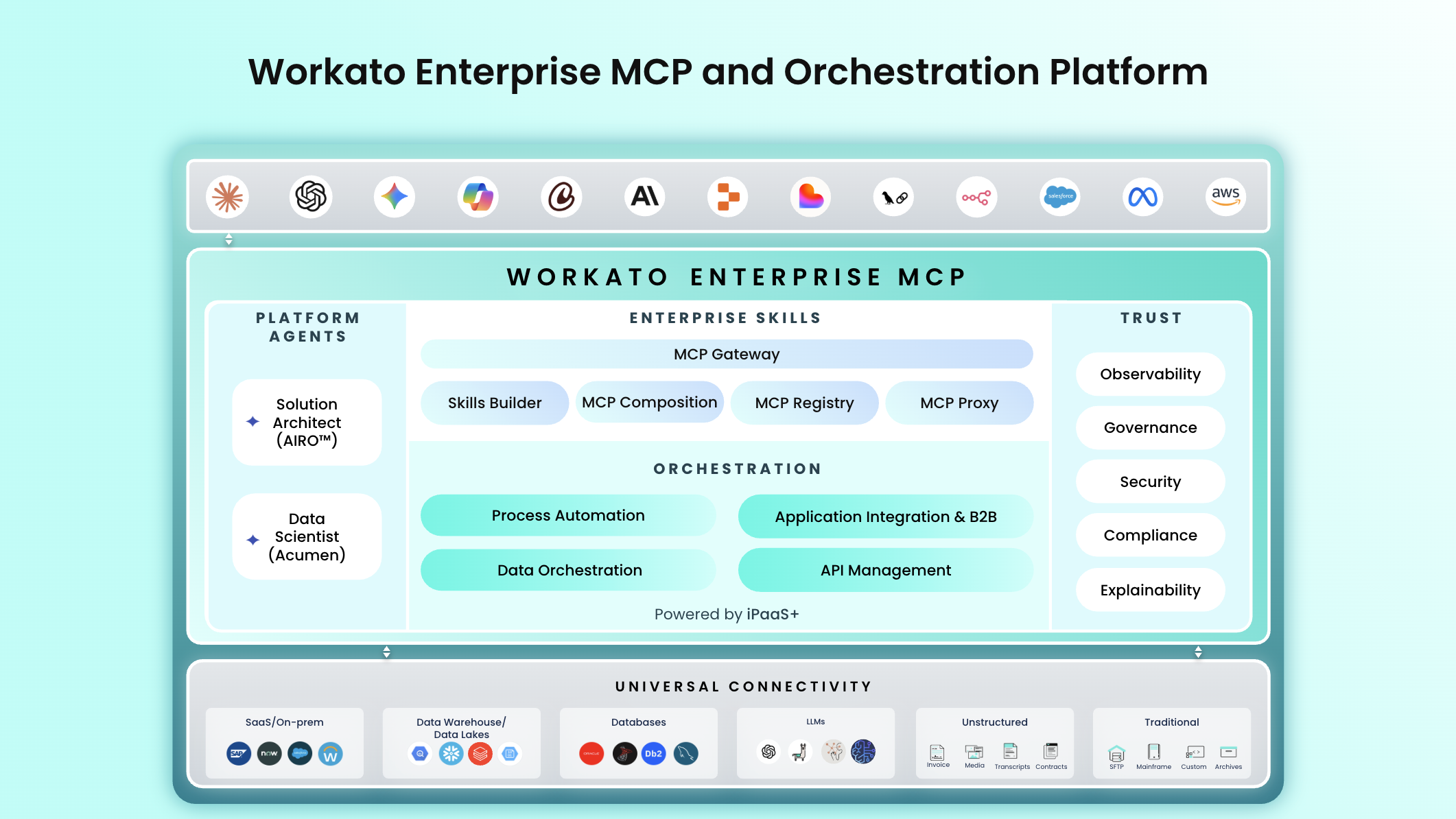 Workato’s Enterprise MCP Platform transforms AI from experimental to operational by giving it the predictability, context, and trust needed to run the business safely.