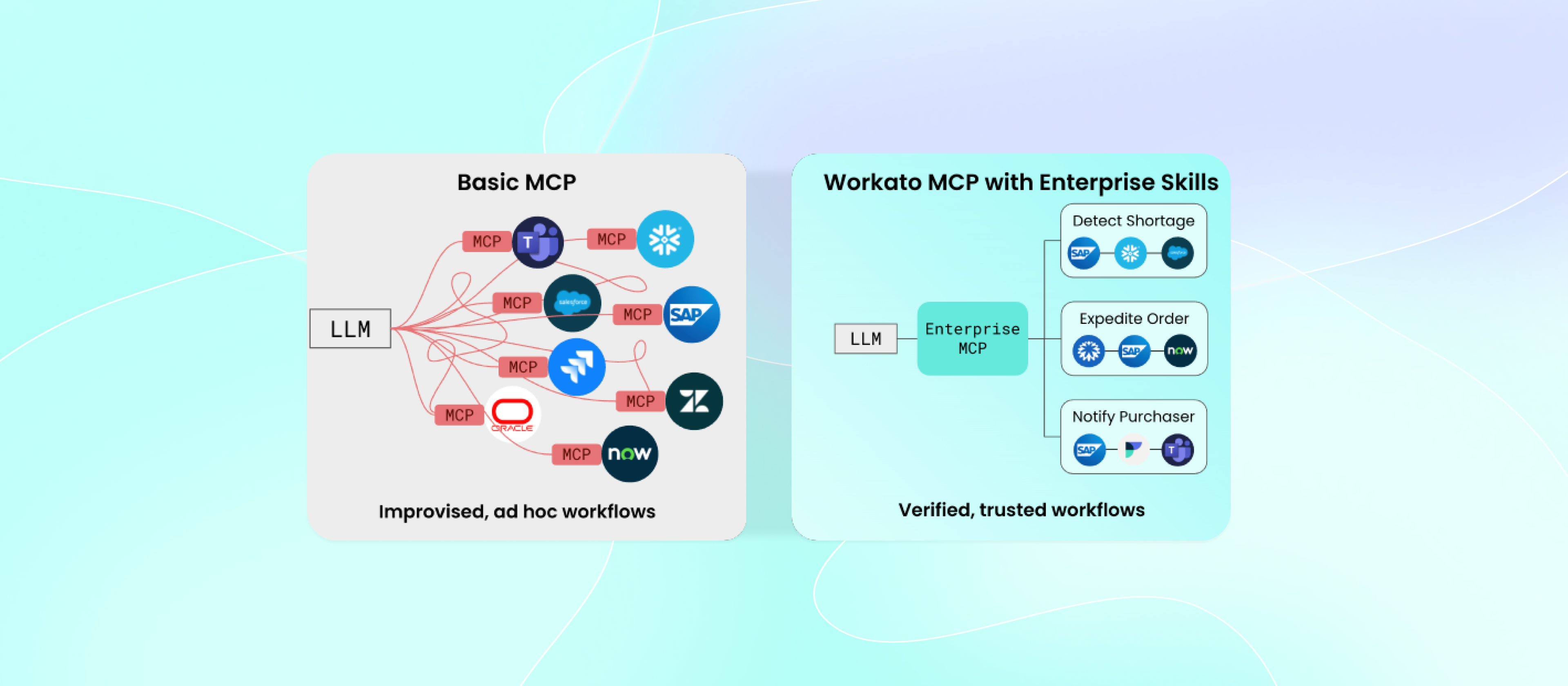 Workato Enterprise MCP closes that gap. It builds on the emerging MCP standard and adds the orchestration, context, and trust that enterprises require to make agentic AI safe, predictable, and scalable.