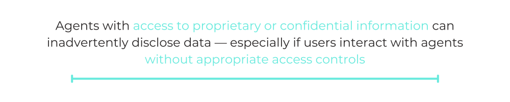 One of the most immediate risks of agentic AI is that it increases the potential of data leakage. Agents with access to proprietary or confidential information can inadvertently disclose data — especially if users interact with agents without appropriate access controls.