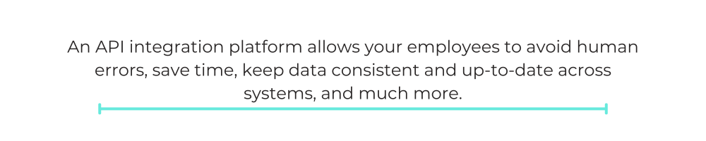 An API integration platform allows your employees to avoid human errors, save time, keep data consistent and up-to-date across systems, and much more.