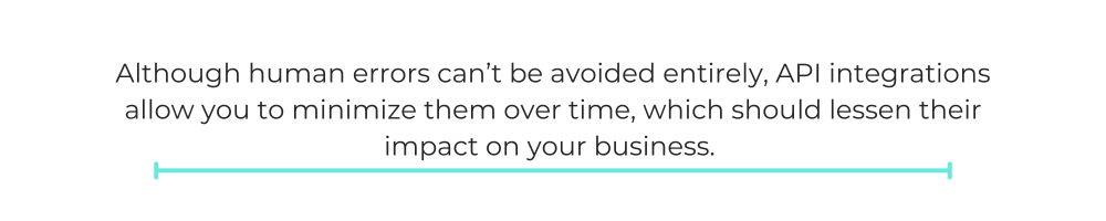 Although human errors can’t be avoided entirely, API integrations allow you to minimize them over time, which should lessen their impact on your business.