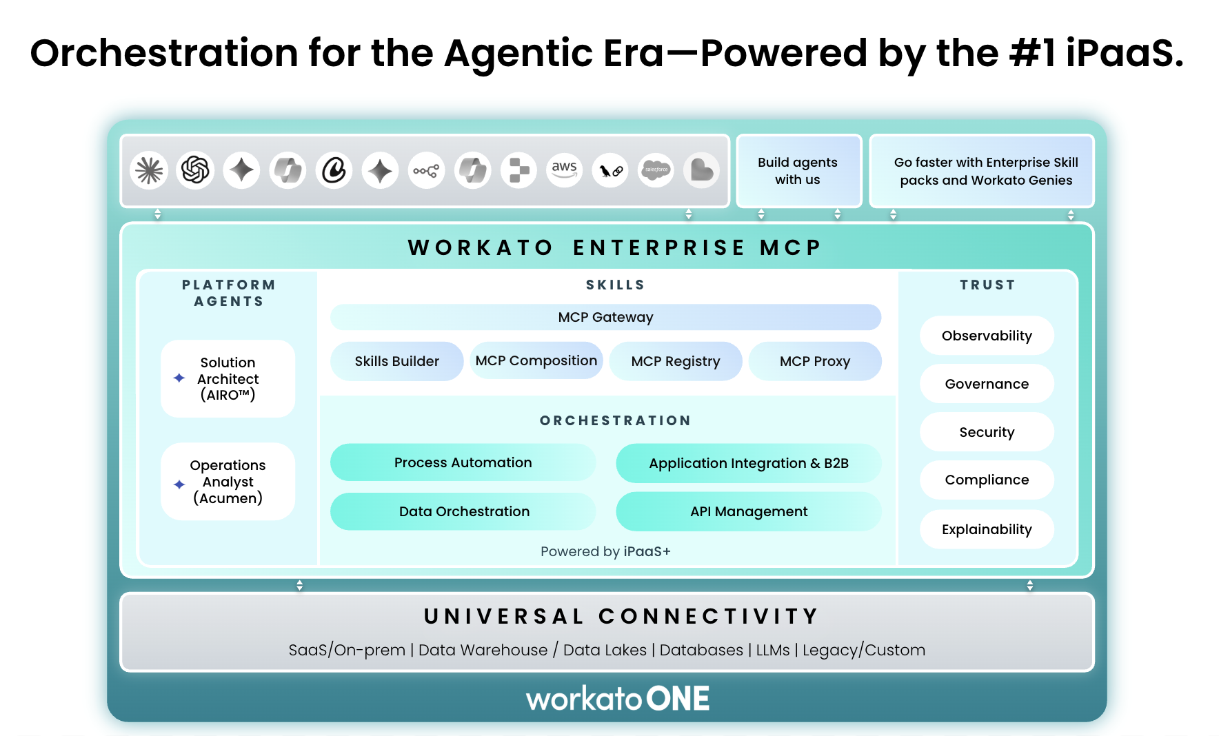 Workato Enterprise MCP provides that foundation. It turns isolated agents into a connected network of intelligent, enterprise-ready operators that coordinate across your entire business.