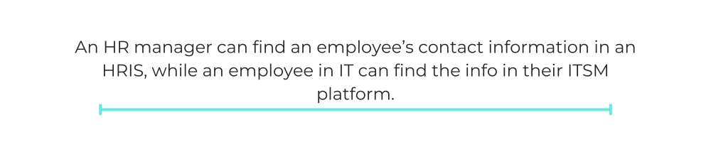 - An HR manager can find an employee’s contact information in an HRIS, while an employee in IT can find the info in their ITSM platform.