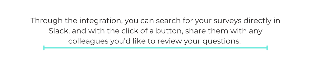 Through the integration, you can search for your surveys directly in Slack, and with the click of a button, share them with any colleagues you’d like to review your questions.