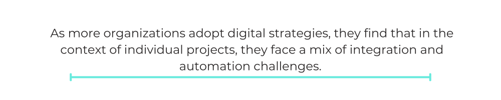 As more organizations adopt digital strategies, they find that in the context of individual projects, they face a mix of integration and automation challenges.