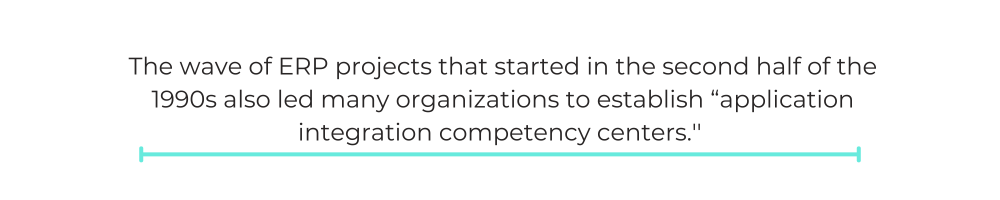The wave of ERP projects that started in the second half of the 1990s also led many organizations to establish “application integration competency centers.”