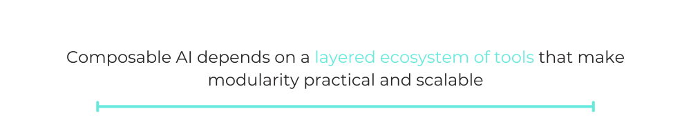 Composable AI depends on a layered ecosystem of tools that make modularity practical and scalable. The main categories include: