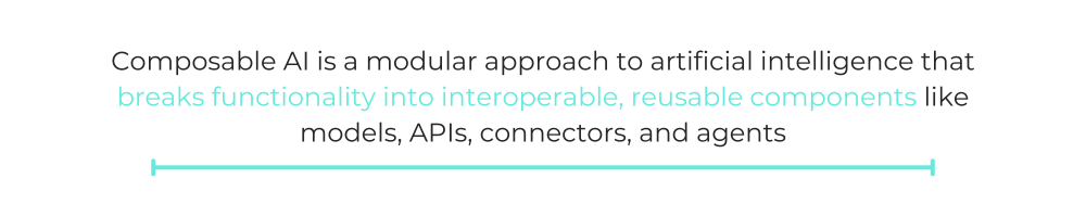 Composable AI is a modular approach to artificial intelligence that breaks functionality into interoperable, reusable components like models, APIs, connectors, and agents.