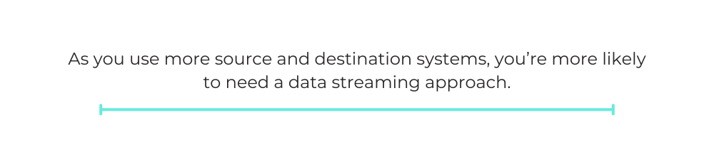 In other words, as you use more source and destination systems, you’re more likely to need a data streaming approach.