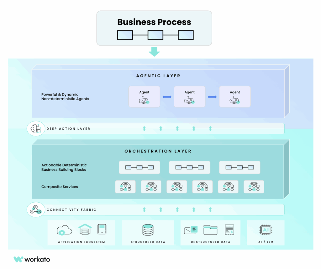 What’s missing is the ability to orchestrate—the bridge that connects intelligence with enterprise systems like CRMs, ERPs, databases, and APIs. Without that orchestration layer, AI can’t access governed, real-time data, run end-to-end processes, or follow clear roles and escalation paths. It also can’t continuously improve or manage its own lifecycle.