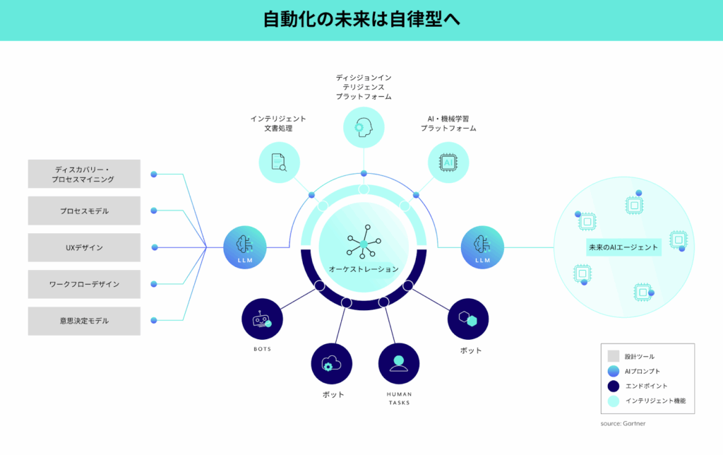 企業が単純な自動化を超え、AI駆動のインテリジェントシステムを目指すとき、BOATプラットフォームはエージェンティック・オーケストレーションの基盤となります。Gartnerは、BOATプラットフォームが「インテリジェント・アプリケーション」の実現に不可欠になると予測しています。これは、AIエージェントを組み込んで意思決定や行動を自律的に行う企業システムを指します。