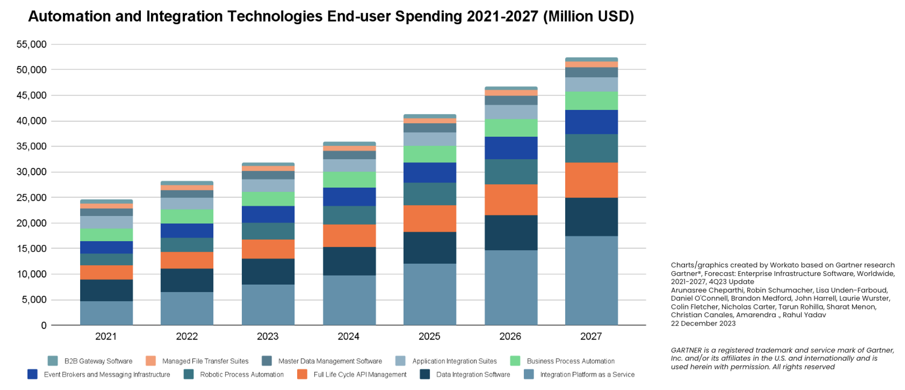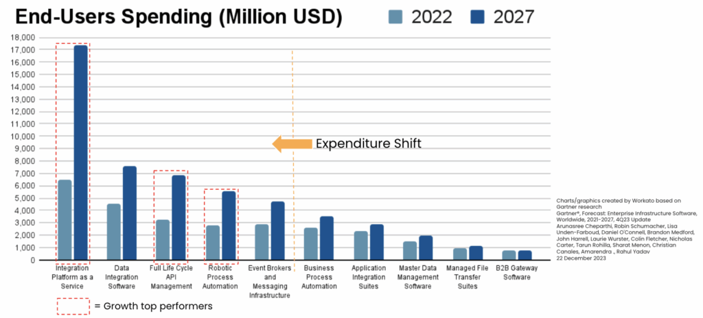 中でも、iPaaS(Integration Platform as a Service)は圧倒的な存在感を示しており、