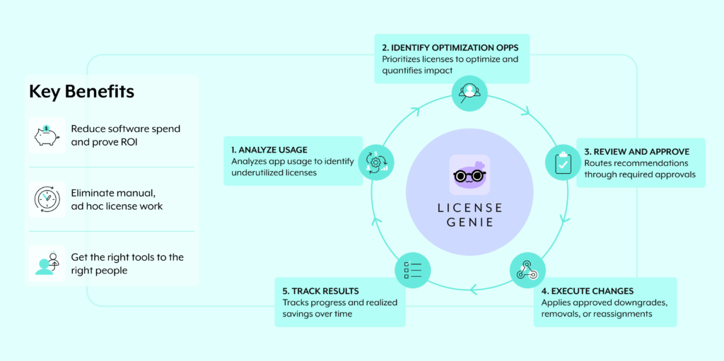 IT部門の関与なしに、未使用ライセンスを自律的に特定し、対応し、エンドツーエンドでコスト削減を証明する唯一のソリューション