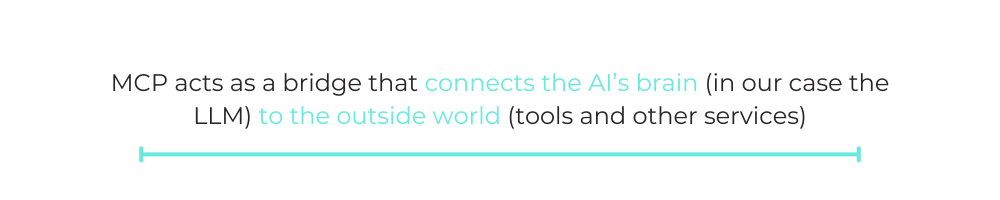 つまり、MCPはAIの「脳(LLM)」と外部の「ツール群」をつなぐブリッジなのです。