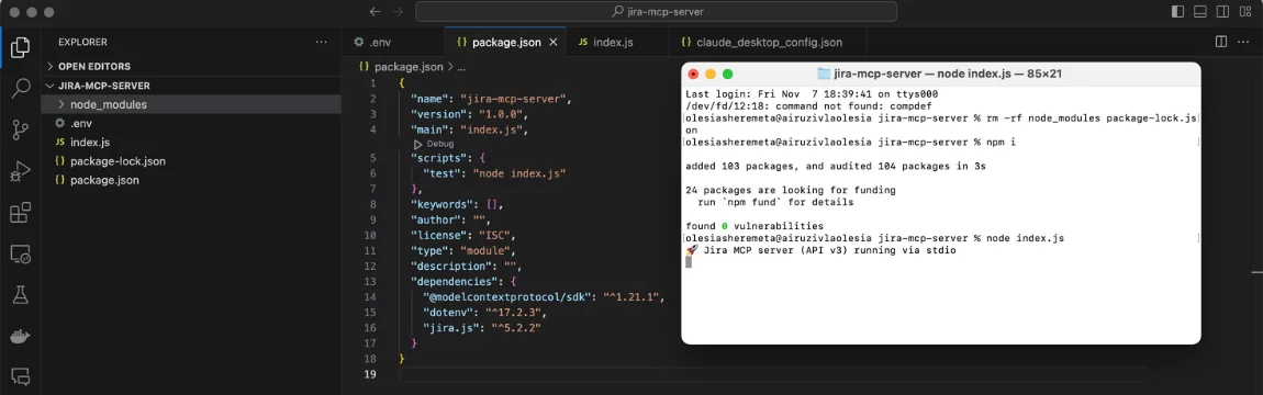 npm install @modelcontextprotocol/sdk jira.js dotenv p-retry