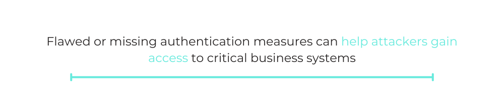 Flawed or missing authentication measures can help attackers gain access to critical business systems. Make sure to enforce strict authentication measures, review authentication regularly, and adjust authentication levels if your toolchain changes.