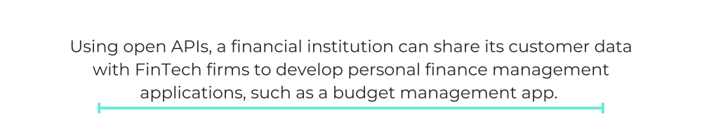 Open APIs allow companies to innovate and provide better services to their customers. Take digital banking, for instance. Using open APIs, a financial institution can share its customer data with FinTech firms to develop personal finance management applications, such as a budget management app.