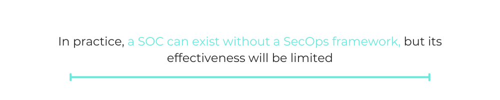 In practice, a SOC can exist without a SecOps framework, but its effectiveness will be limited. Analysts may detect issues but lack the operational channels to remediate them quickly. Conversely, a strong SecOps program ensures that what begins as an alert in the SOC is quickly triaged, contextualized, and acted upon by the right operational teams.