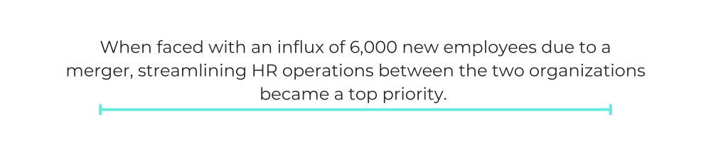 When faced with an influx of 6,000 new employees due to a merger, streamlining HR operations between the two organizations became a top priority.